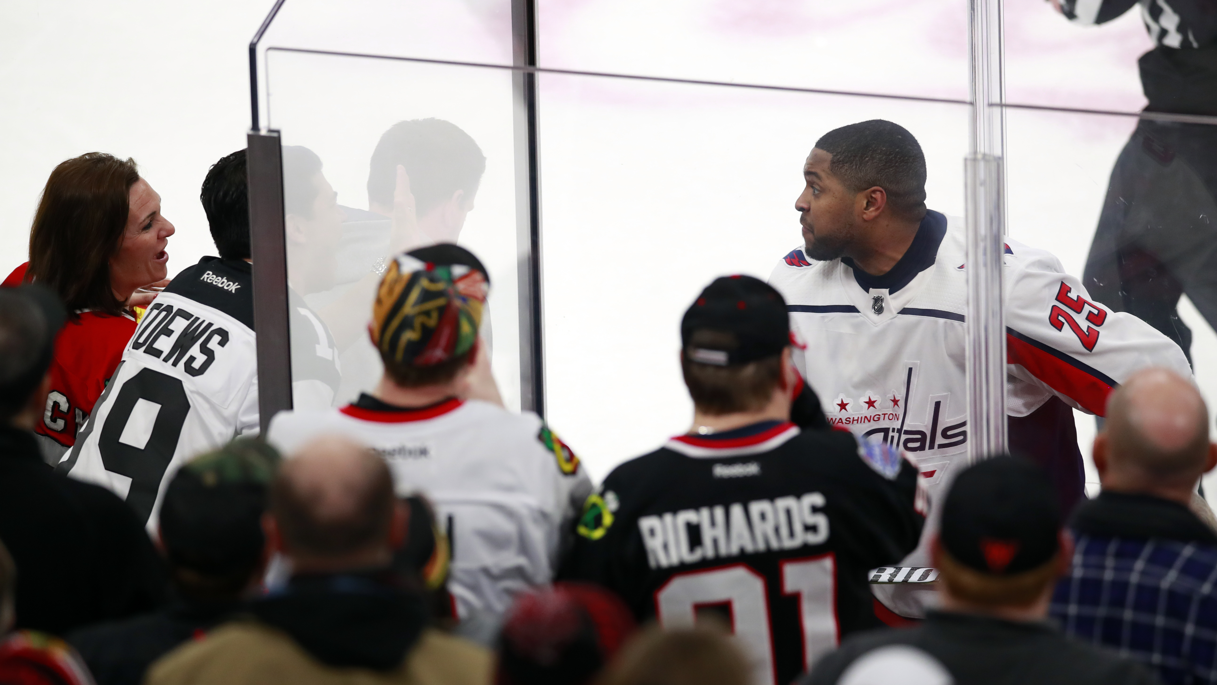 Four Chicago Blackhawks fans were ejected from their home arena for racially taunting a black player from the visiting Washington Capitals.